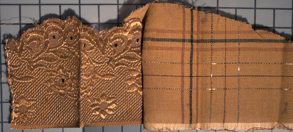 | D00074 | Swatch of cloth with note, Dress worn by Martha L. Maitlen before she married Elmer E. Delk, June 10, 1892 | John Delk/Elmer Elsworth Delk/Martha Maitlen/cloth copy/D000074.jpg |