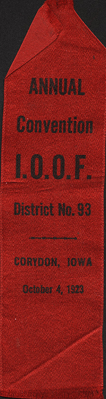 | D00117 | Ribbon I.O.O.F District 93 Annual Convention dated October 04, 1923. | John Delk/Elmer Elsworth Delk/p7lsm_img_2/fullsize/D00117.jpg |
