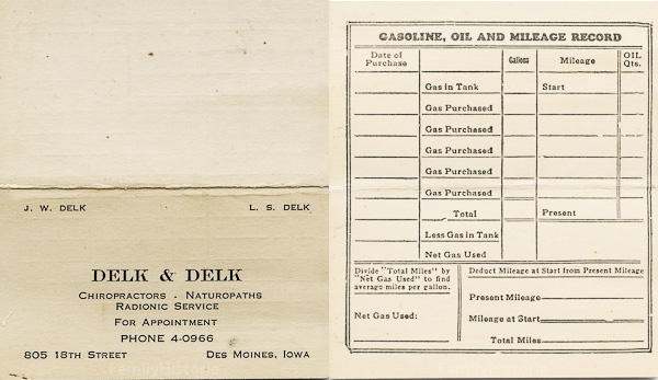 | D00100 | Mailing tag showing return address for J.W. Delk as Davis City, Iowa. Tag Addressed to Mrs. E.E. Delk, Weldon, Iowa. | John Delk/Elmer Elsworth Delk/Martha Maitlen/p7lsm_img_2/fullsize/D000100.jpg |