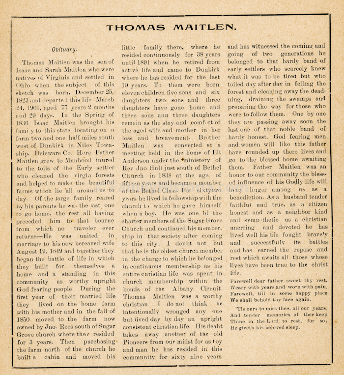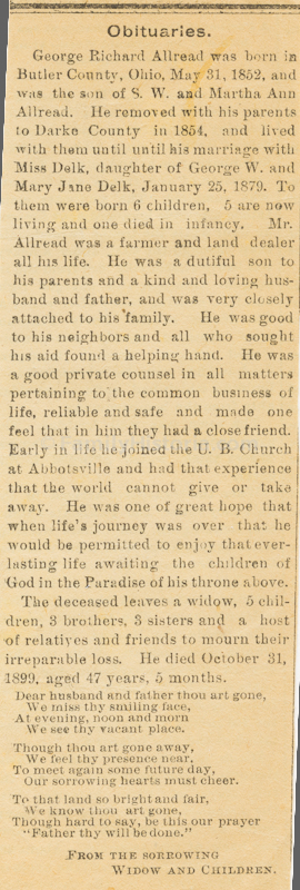 Obituary of George Richard Allread, son-in-law of George Washinton Delk |