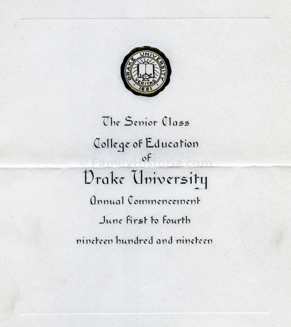 Drake University Commencement Announcement for 1919, Bernice Luella Butler |