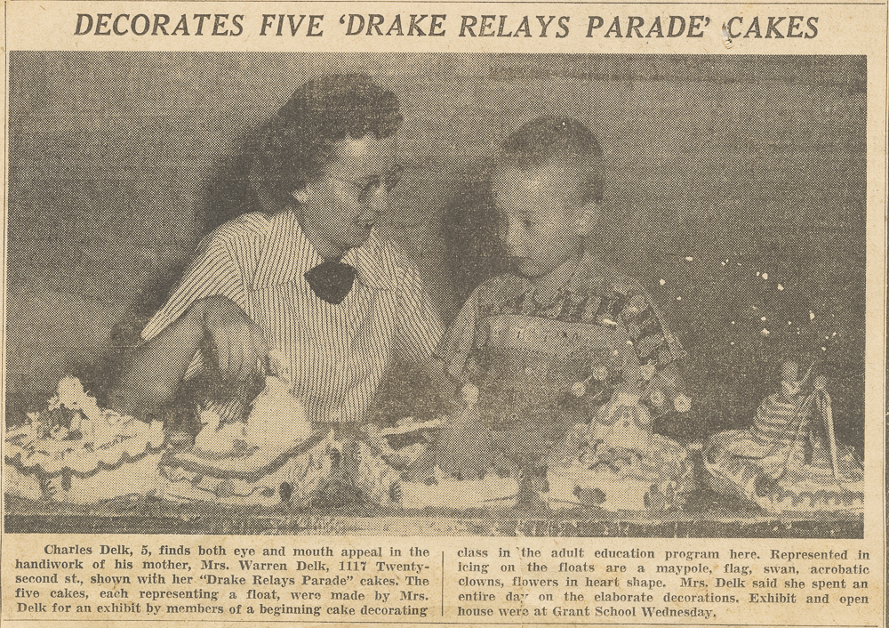 Picture from the April 23, 1954 Des Moines Tribune showing Ruth (Mainard) Delk and son, Charles Warren Delk, Jr. |