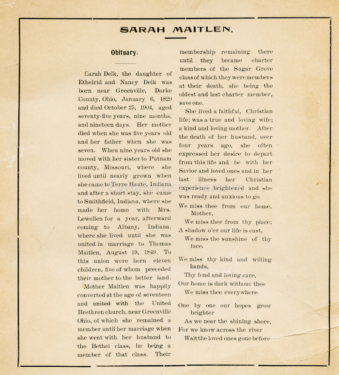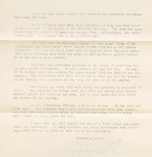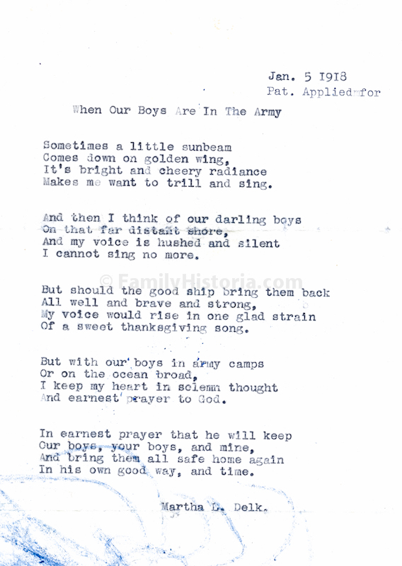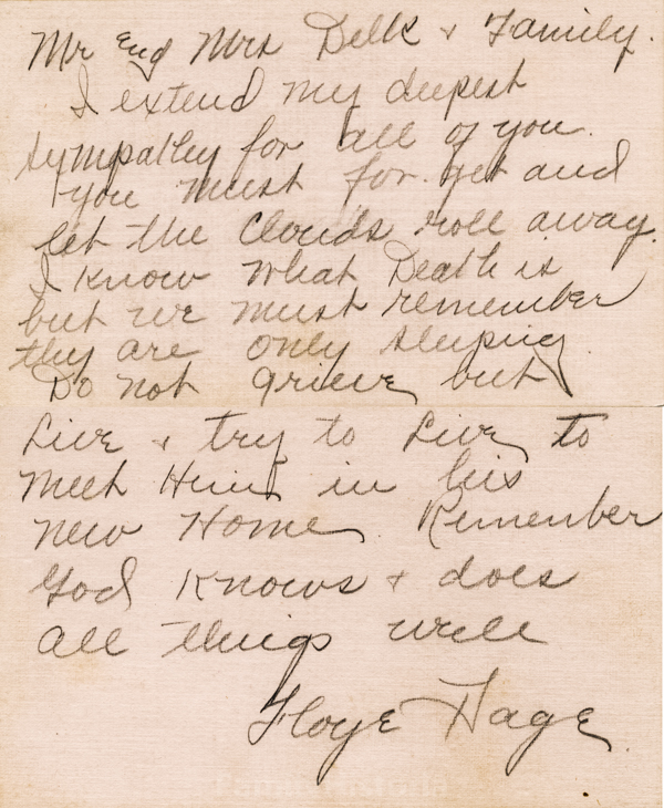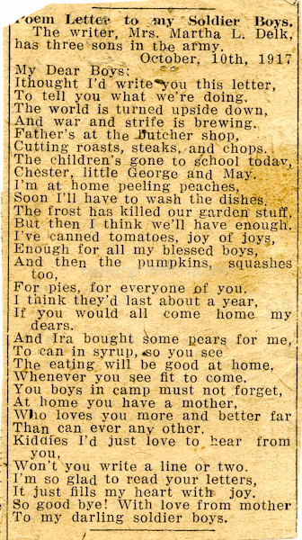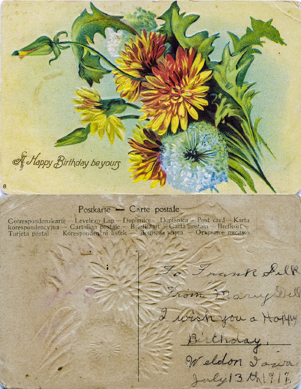 Birthday card from Martha Luticia (Maitlen) Delk to her son, Franklin Elsworth Delk, dated July 14, 1917. Frank was in the army. |