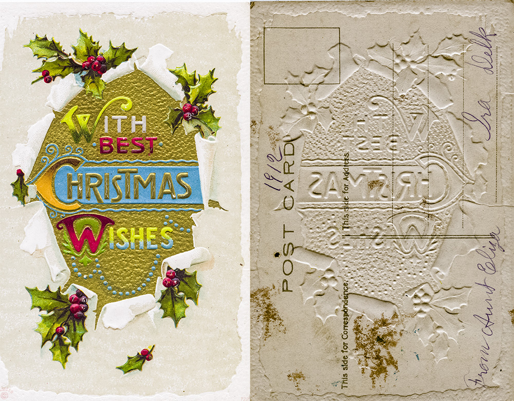 Christmas card to Ira Lesley Delk from his Aunt Eliza 1912. |