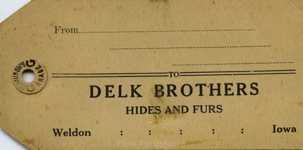 Shipping label to Delk Brothers Hides and Fur sometime shortly after WW1 |
