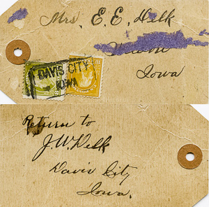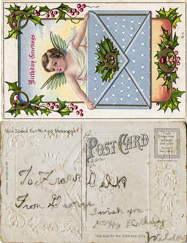Birthday Card sent to Franklin Elsworth Delk by Martha Luticia (Maitlen) Delk. Sent July 1918, returned March 03, 1919. |