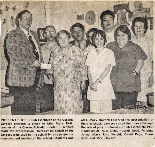 Picture from Osceola Sentinel showing Mary May Delk and Students of the Clarke Activity Center which she directed |