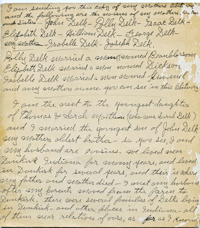 Birthay card sent to Mary May Delk from Mary Buffon, LeRoy, Iowa dated 1909 |