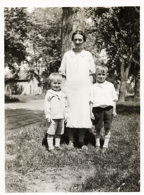 Bernice Luella (Butler) Delk with sons, Robert Elmer Delk (L) and Charles Warren Delk.