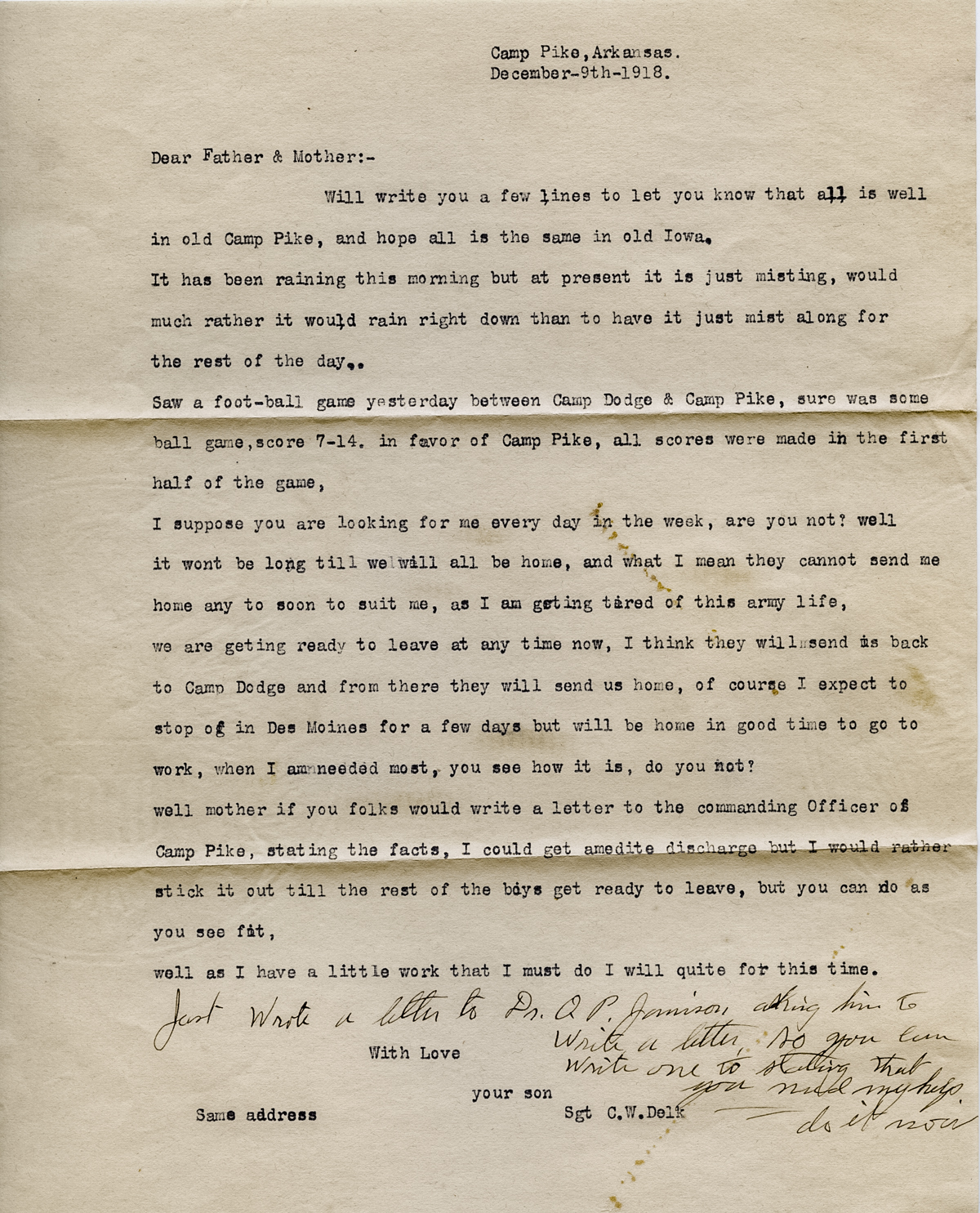 Saw a foot-ball game yesterday between Camp Dodge & Camp Pike, sure was some