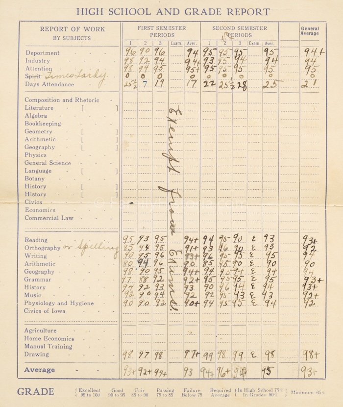 Report card for mary May Delk. Sixth grade school year, 1919-1920