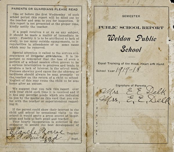 Report card for mary May Delk. Fourth grade school year, 1917-1918