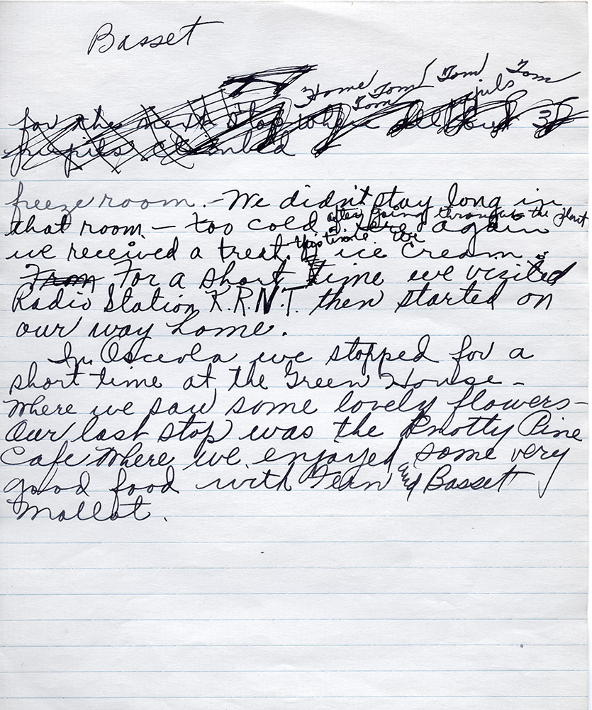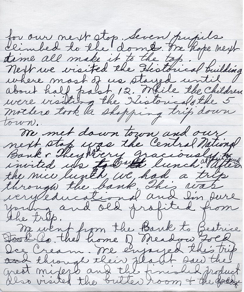Notes from Center School field trip to Des Moines prepared by Mary May Delk. Date Unkown